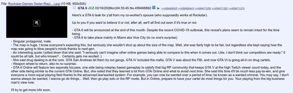 Another GTA 6 leak on 4Chan. A user posted that his co-worker's spouse works at Rockstar. Here's what he found out: