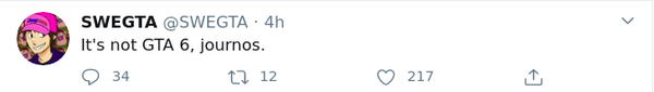 Update: Unfortunately, SWEGTA posted another tweet claiming that this is not related to GTA 6.